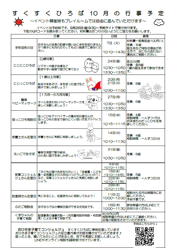 10月すくすくひろばイベントスケジュール