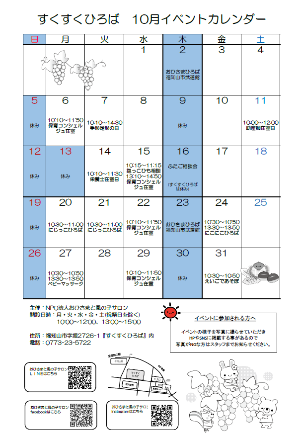 すくすくひろば10月のイベントスケジュールです。