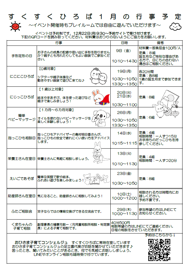 毎月のイベントスケジュールと予約開始日時は、公式LINEで先行配信しております。