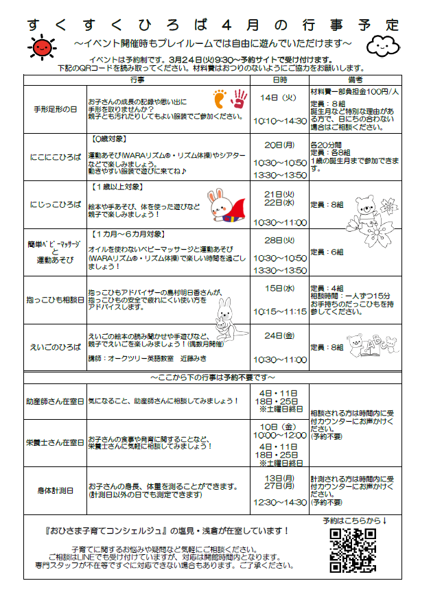 4月すくすくひろばイベントスケジュール