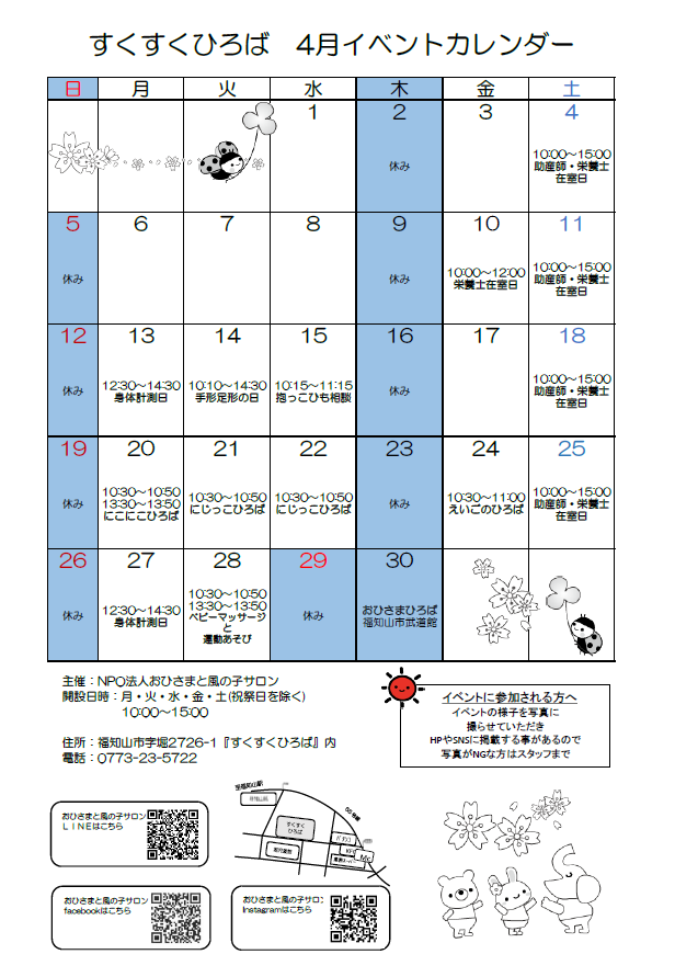 すくすくひろば4月のイベントスケジュールです。